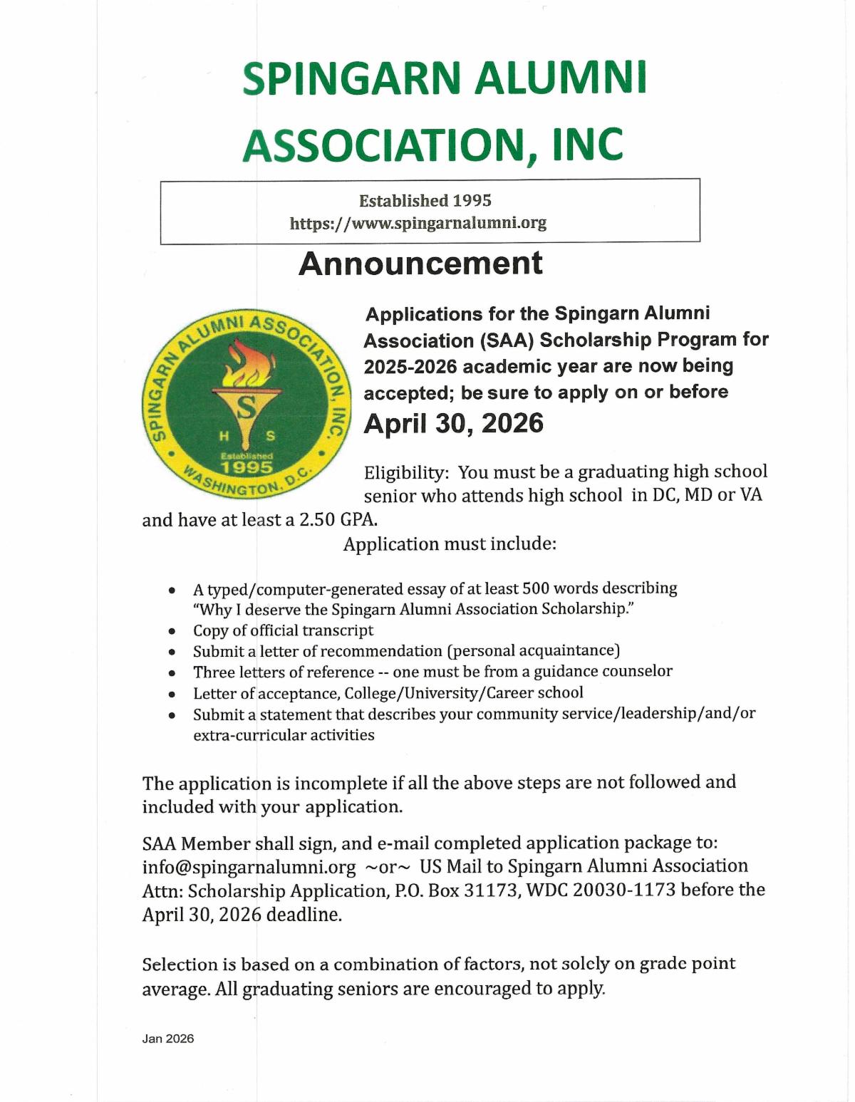 Applications for Spingarn Alumni Association's scholarship program for the 2025-2026 academic year is now OPEN.
